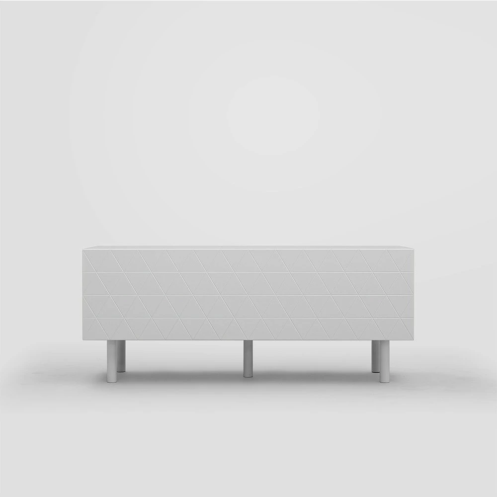 Abstract Media Furniture from Decotique. A modern and stylish furniture in Scandinavian design. It has a stylish design and is made of MDF, matt lacquered and polished. It has an engraved / milled pattern on the front and legs are in lacquered ash. The uniqueness of this beautiful piece of furniture is that it is built by a carpenter before painting which will make the furniture look like it is made in one piece. The pattern has the same dimension of the entire series, which means you can put two Abstract products next to each other for a tidy overall impression. It has a push-open feature which allows it to be opened with a light touch. Abstract becomes a very stylish interior decor and furniture in your living room or TV room and you will surely enjoy using it for several years.