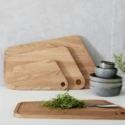 U3 chopping board from Andersen, designed by Anne Qvist. Functional chopping board with a gracious shape that also makes it an excellent serving board. The chopping board have a practical hole making it easy to handle and allows the chopping board to be stored on a hook, looks especially nice with the Andersen hook in oak. The chopping board is made of durable solid oak, making it both hygienic and suitable for using knives on it. Not dishwasher safe.