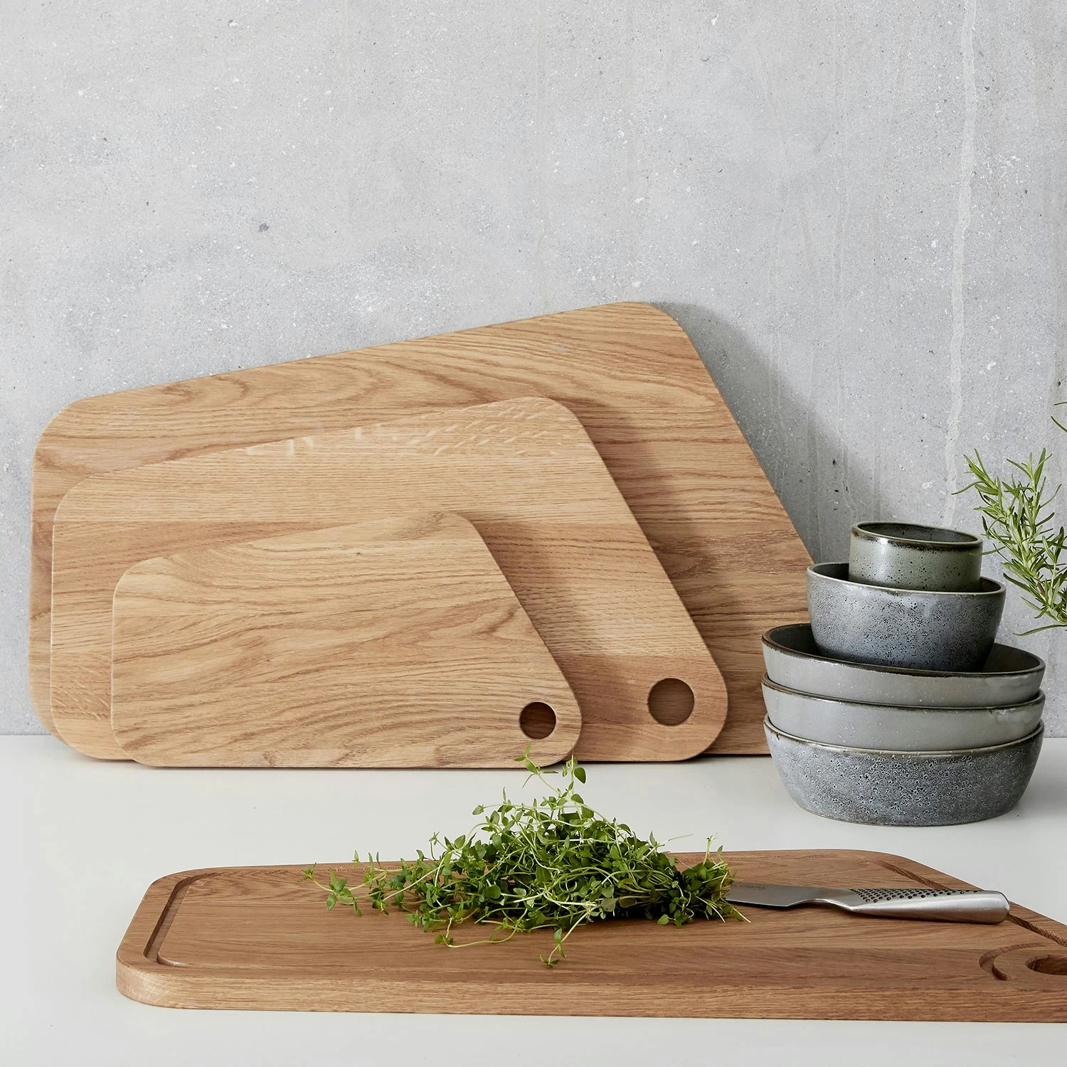 U3 chopping board from Andersen, designed by Anne Qvist. Functional chopping board with a gracious shape that also makes it an excellent serving board. The chopping board have a practical hole making it easy to handle and allows the chopping board to be stored on a hook, looks especially nice with the Andersen hook in oak. The chopping board is made of durable solid oak, making it both hygienic and suitable for using knives on it. Not dishwasher safe.