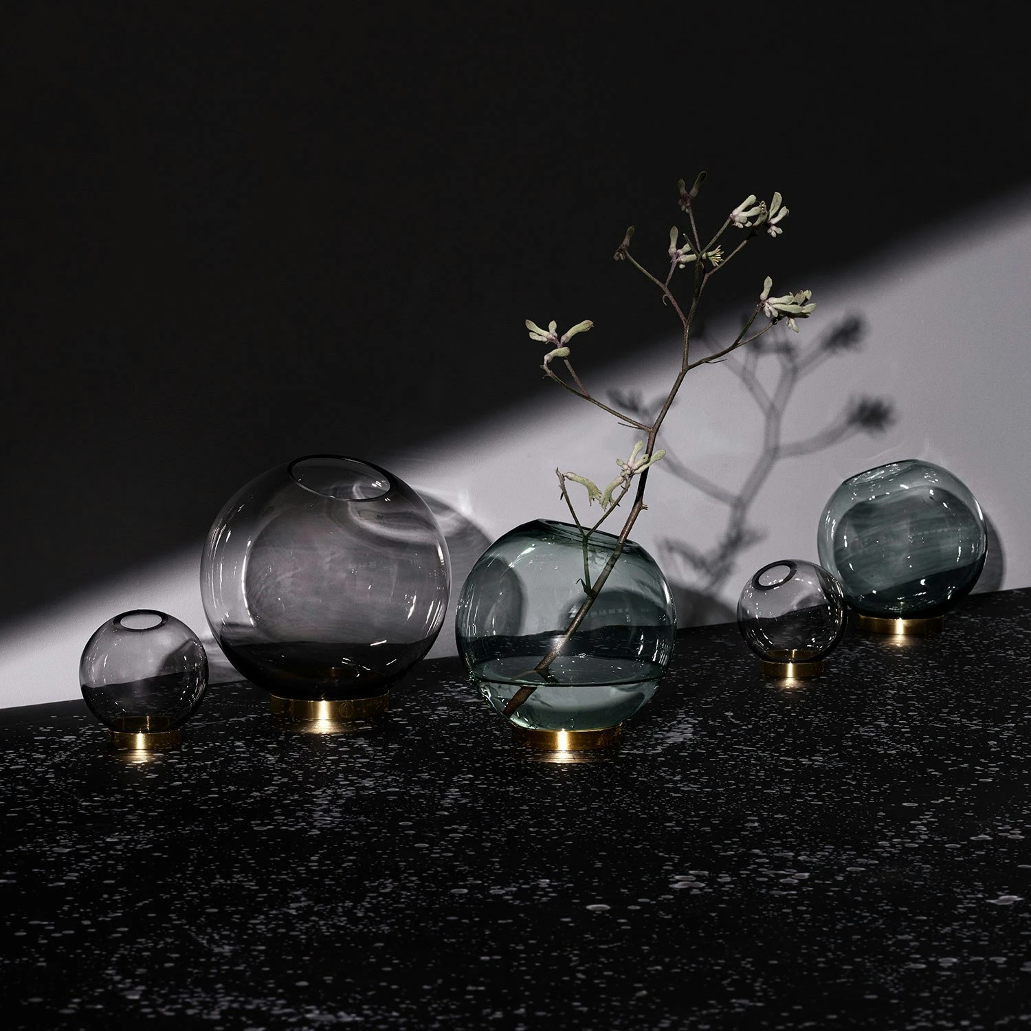 Globe is available in different colours and three sizes. This one has smoke-coloured glass. The vases are ideal for flowers and plants, but they also fit for more creative solutions. The large and medium-sized Globes can be used for tealight candles, and the smallest is excellent for room scents, and is also perfect for single flowers.