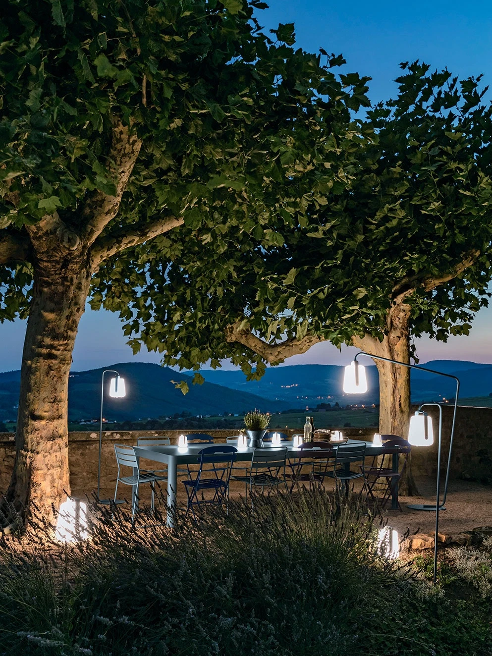 Three Balad lamps from Fermob is a charming outdoor lamp – put it on the table or hang it in the ceiling or in a tree. The lamp is charged with the supplied USB cable.