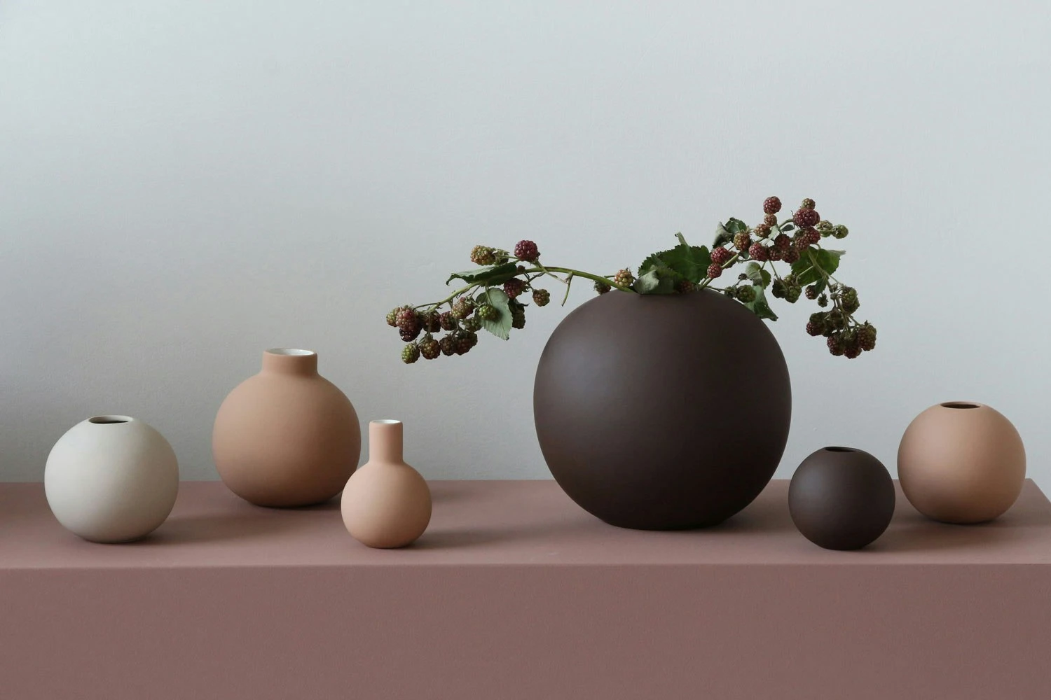 The vase by Cooee Design has an elegant design in ceramic with a round shape perfect for cut flowers and branches. Choose between different colours.