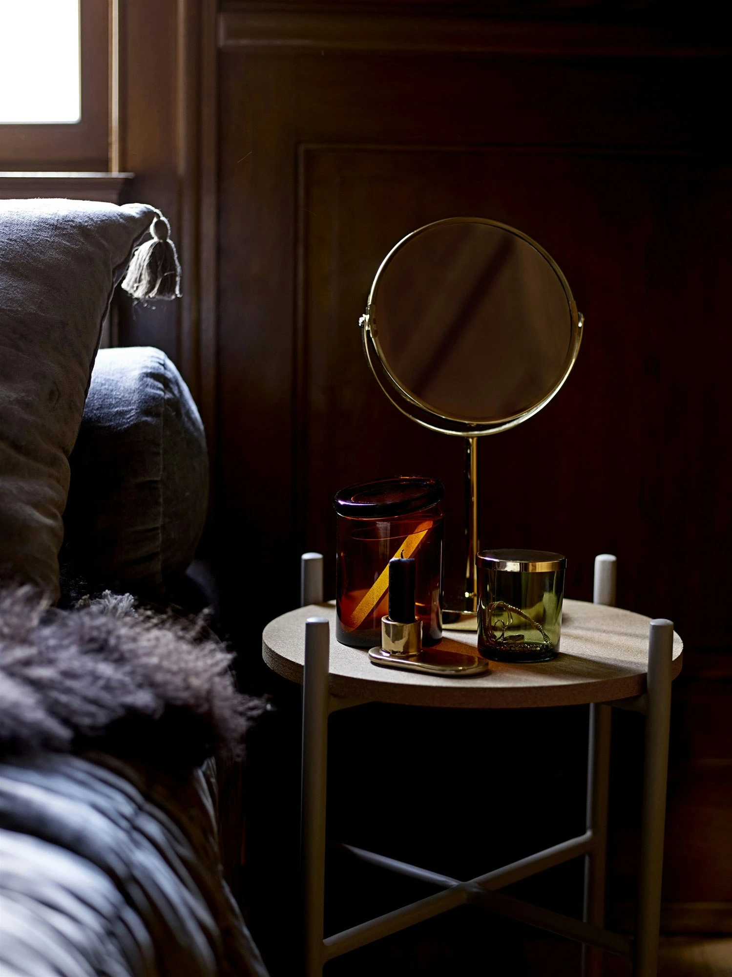Table mirror from Bloomingville. A beautiful and practical table mirror in brass that you can twist as you wish to get the best angle. The mirror also serves as an interior detail in the bedroom, bathroom or hall. The mirror is 2-sided mirror, and one of the sides is a (2x) magnifying glass.