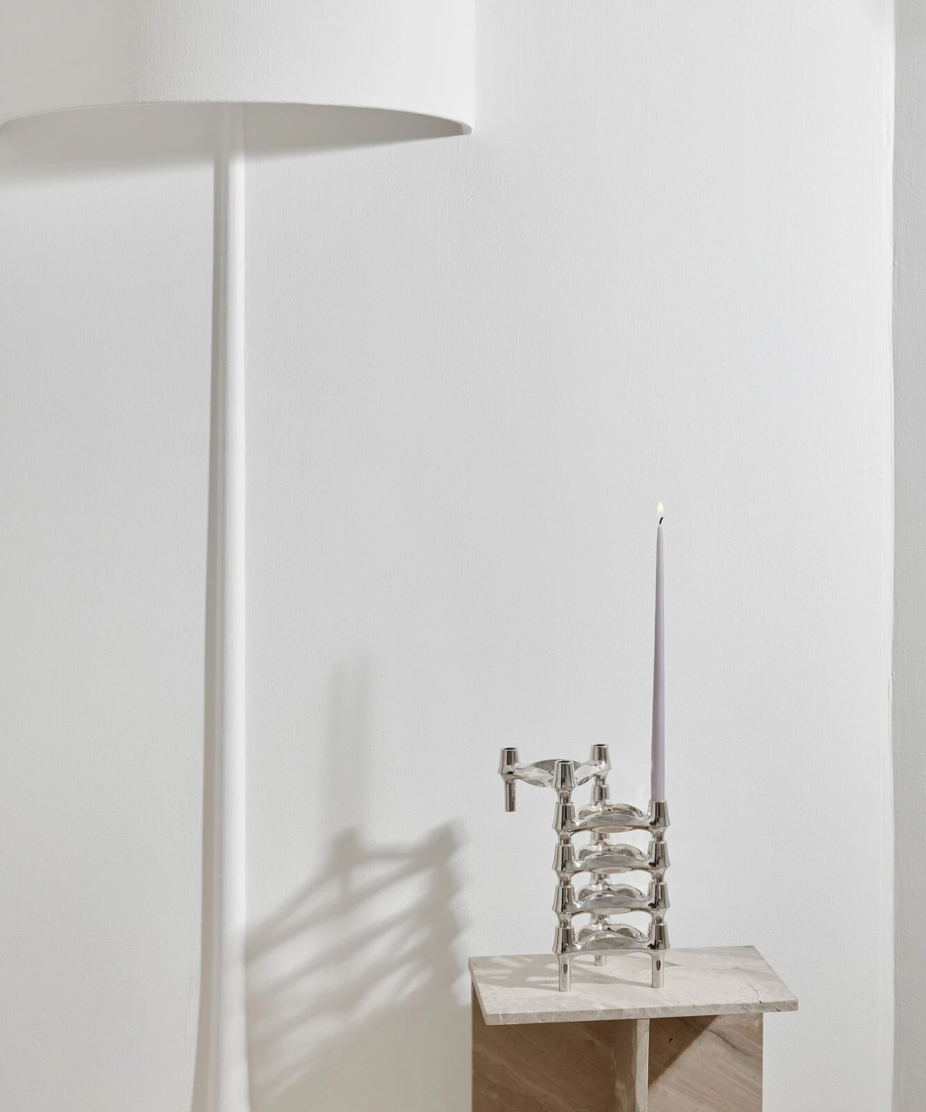 The candle holder by STOFF has an iconic design in zinc alloy and nickel plating with three stackable legs. It has a sculptural expression with an endless creativity to be able to adapt to taste and needs.