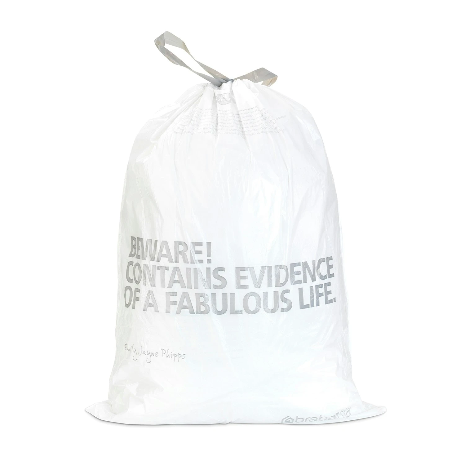 Brabantia Waste Bag, which is 50-60L. These are perfect for use with 50-60 Liters Pedal Bins. The waste bags are made of extra high quality and are easy to use. Thanks to the laces in the bag, this is very easy to close and carry when it’s full and should be thrown. Just lift it out and tighten and throw.