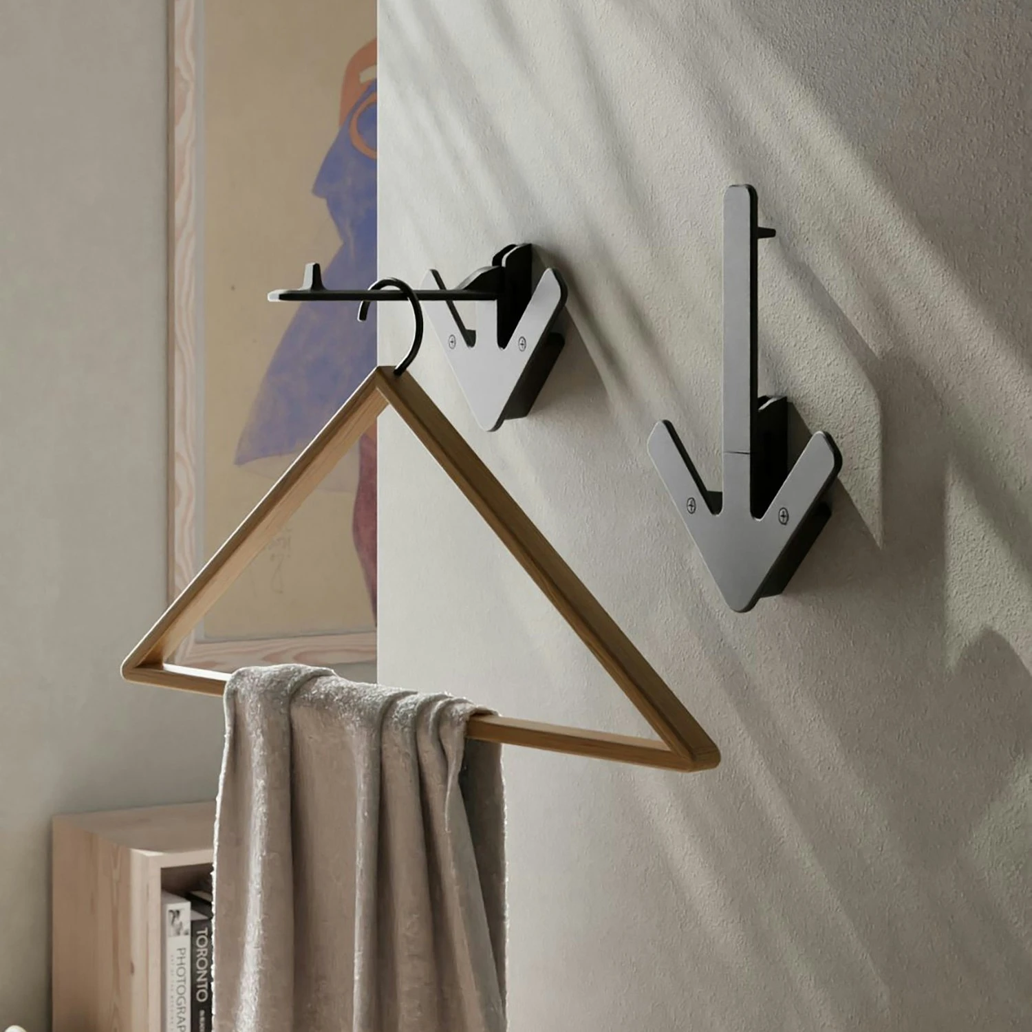 Arrow Hanger from Design House Stockholm. The Arrow hanger can support 20 kg when retracted, when closed there are still three hooks on which to hang various items. When not in use, Arrow will adorn the wall like an iconic graphic symbol, or you can create various patterns using several hangers. Screws and plugs included.