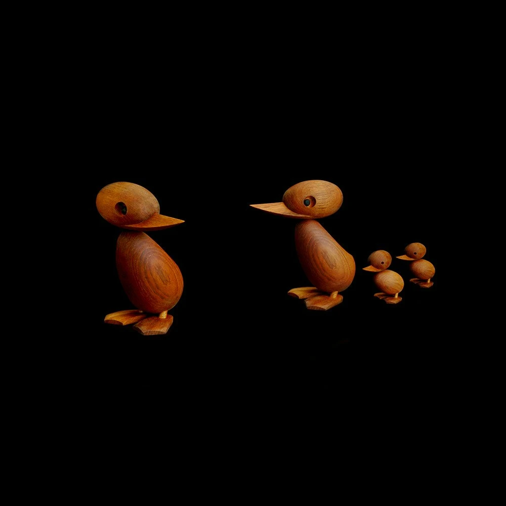 It was during the traffic jam, spring 1959 in Fredriksberg, Denmark as a police stopped the traffic to let an duck family cross the street. This charming moment was captured by picture and spread in newspaper all over Denmark. Many became affected, and especially Hans Bølling who was so taken from the story that he designed this little duck in teak.