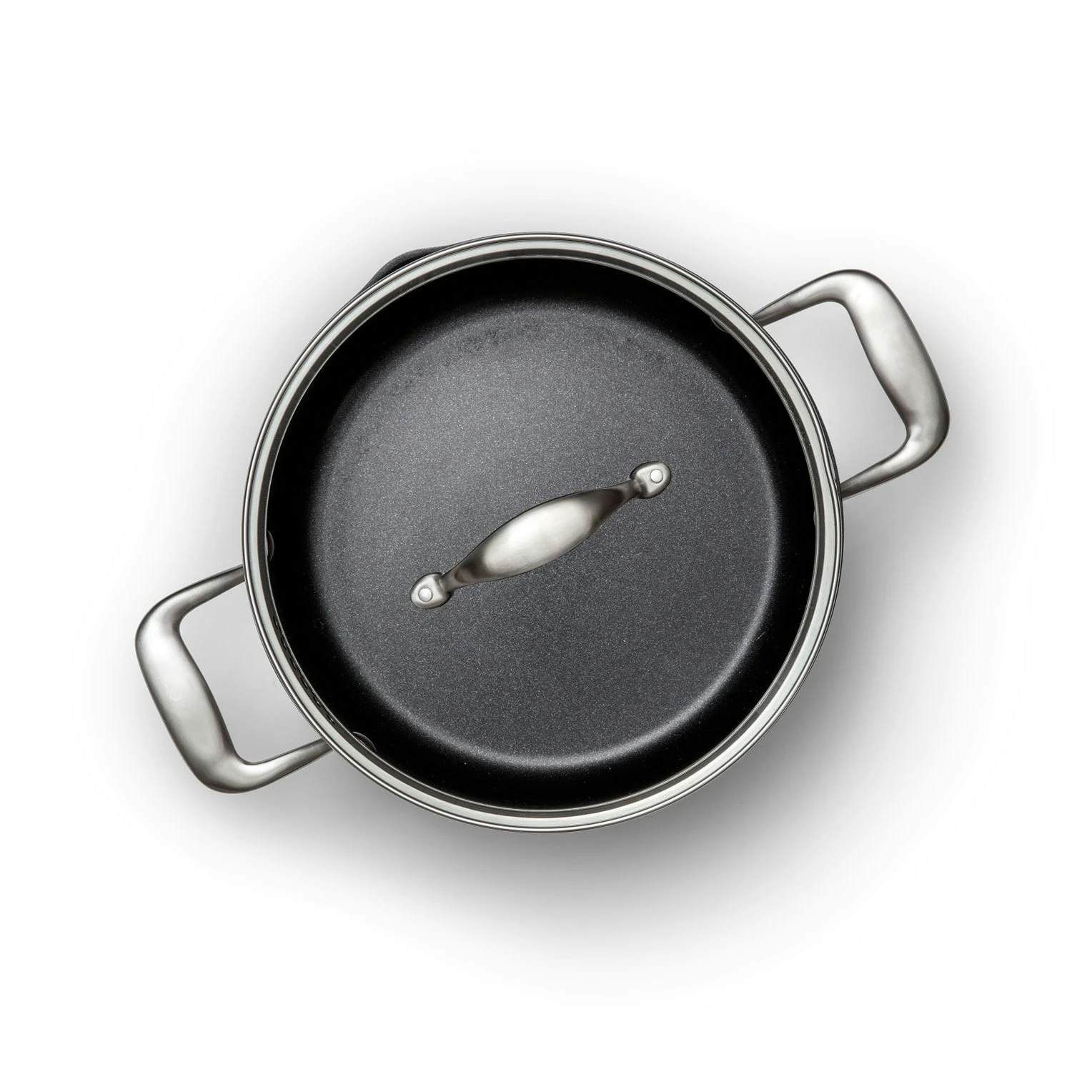 The saucepan is made of several layers of aluminium and stainless steel that provide smooth and fast heating. The supplied glass lid makes it easy to follow the cooking process without lifting the lid.