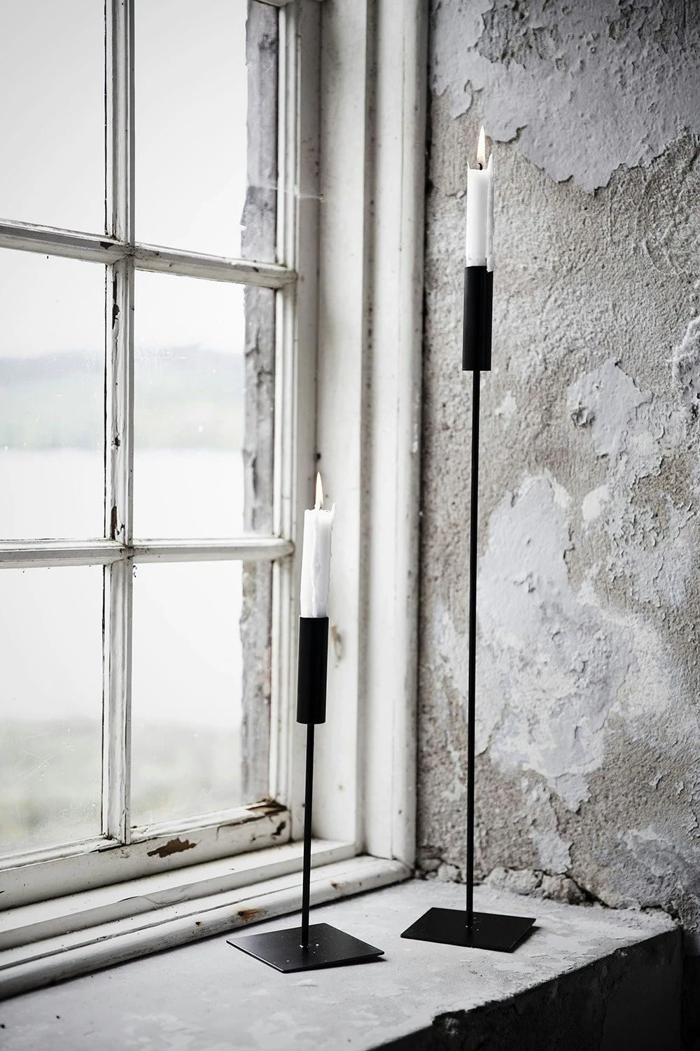 Candleholder from Ernst Kirchsteiger, made of metal. With its high foot, the candle comes up a bit and spreads a beautiful light through the room. Available in three heights.