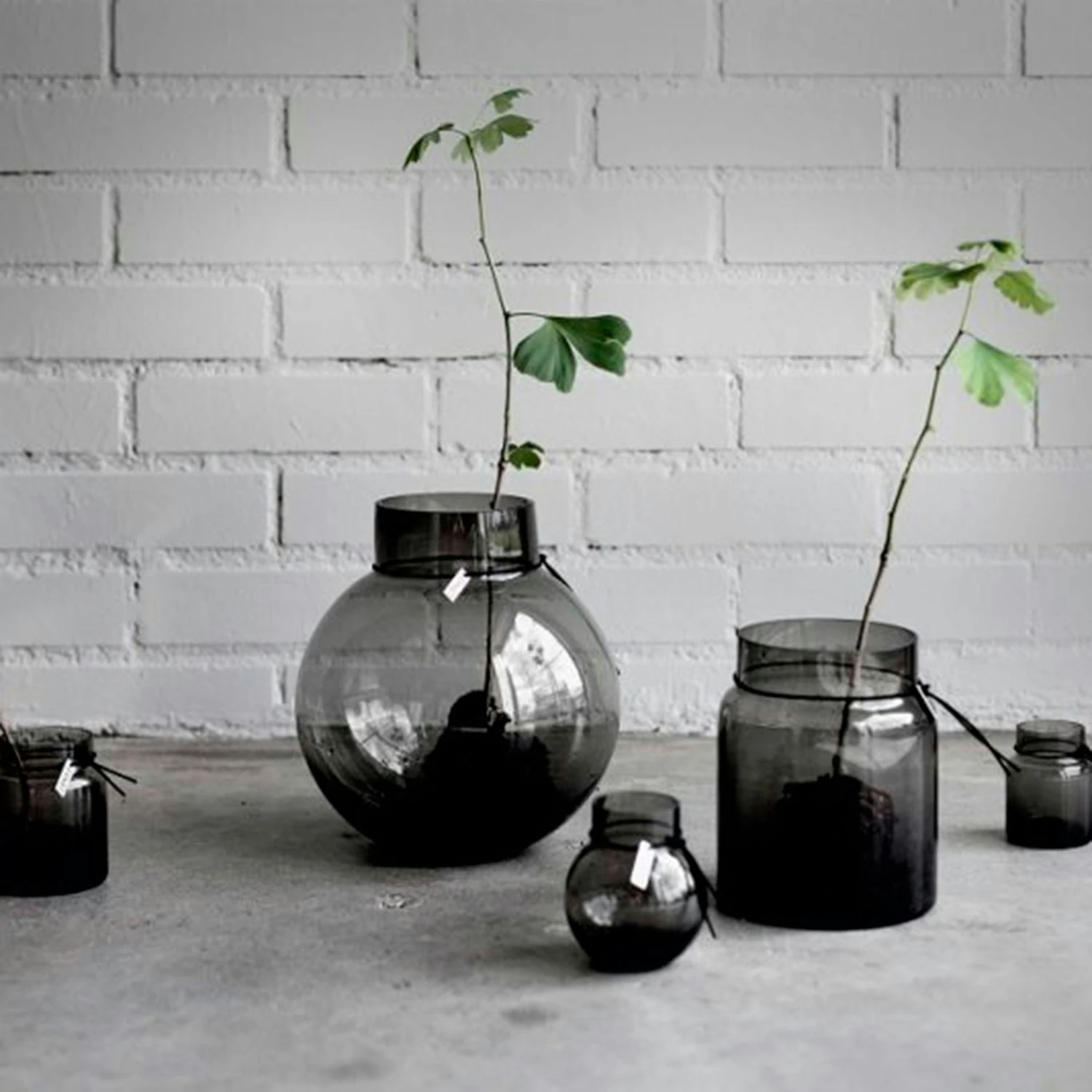 Ernst glass vase has a leather strap with an Ernst logo that gives a rustic feeling. The vase has a simple design and a Scandinavian expression that make the vase look good in every home.