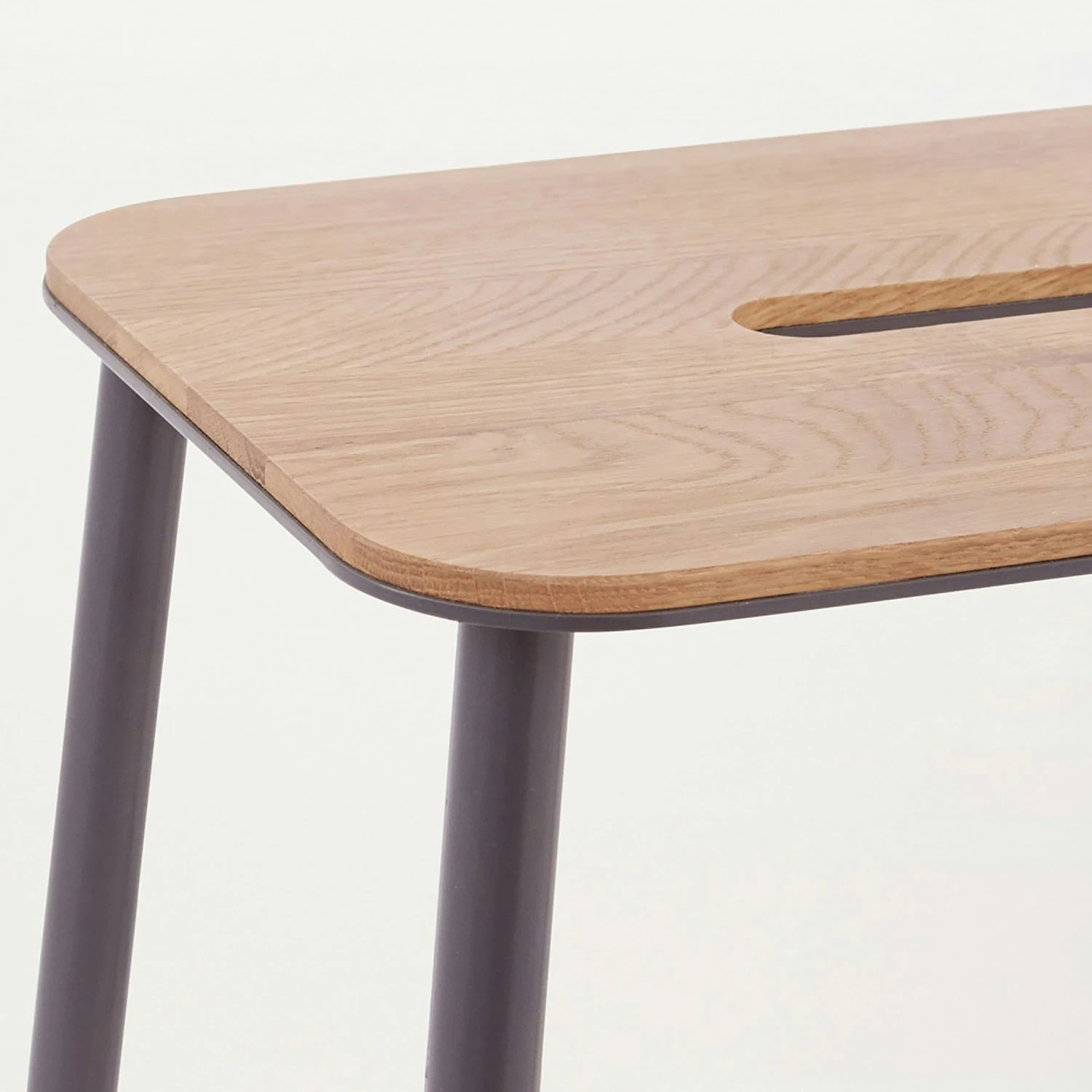 Adam Stool from Frama, a stylish and functional stool made of durable materials. The handle in the centre of the seat makes it easy to move the chair when needed. Its functionality and simple design make it both useful and easy to place, it fits as well in the kitchen or at the bar table as in the hall. Adam stool is available in three seat heights; 50 centimetres fits the hallway or around the dinner table, 65 centimetres fit most kitchen sinks and 76 centimetres that are adapted to a higher bar table.