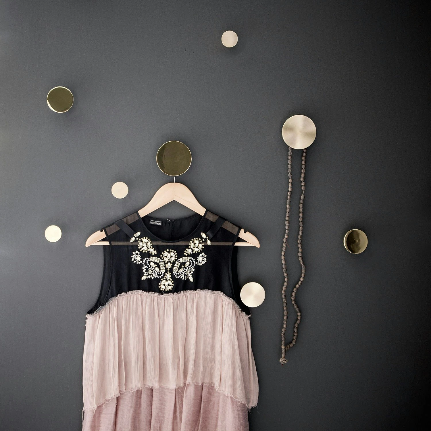 Coat hook in medium size from Nordstjerne in brushed brass. Mix different sizes and make it a stylish and functional part of your interior. The genuine clothes hook fits kitchen towels, thick winter coats and wet towels. Made from 100% brass that will patina beautifully over time.