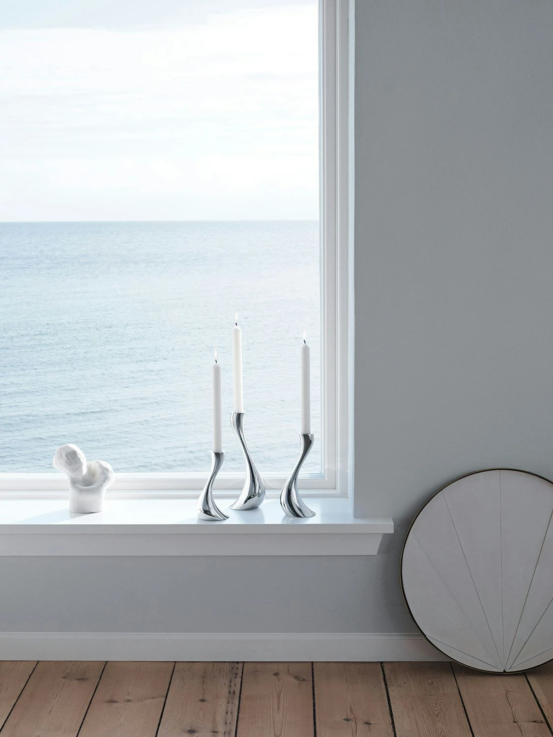 Since the collection was presented in 2008, Cobra has become a major favourite. The shapes create a sense of elegance and are a modern variant of the classic, distinctive and straight candle holder. The Cobra candlestick has an eye-catching expression and becomes extra nice together in a group of three. Together with these three candlesticks, you can create an arrangement that raises the room to a new level.