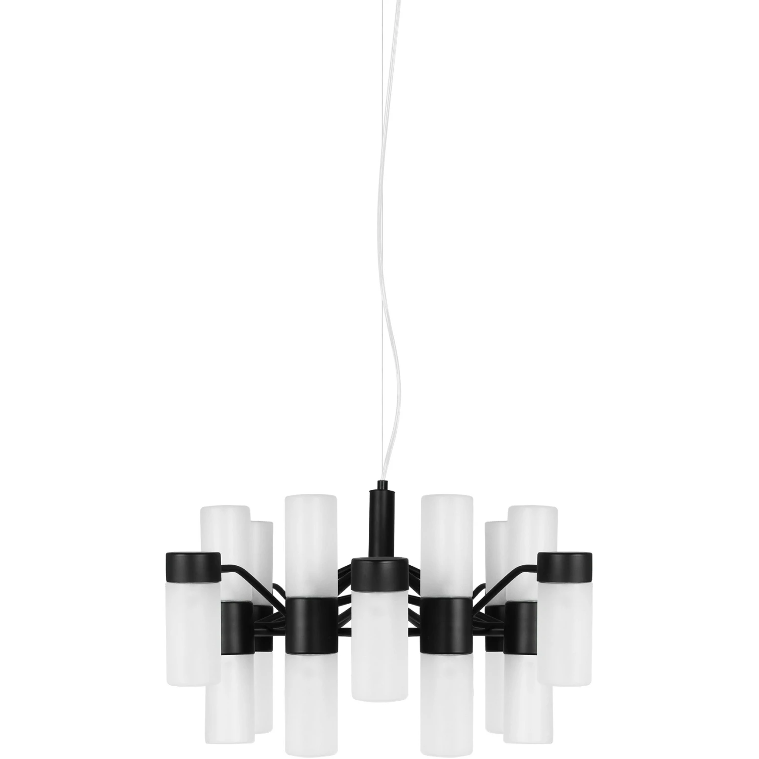 The pendant by Globen Lighting has a beautiful design in metal with bell jars in frosted glass. It has a transparent cable with a black cable cup. Ceiling plug not included. Choose between different sizes.