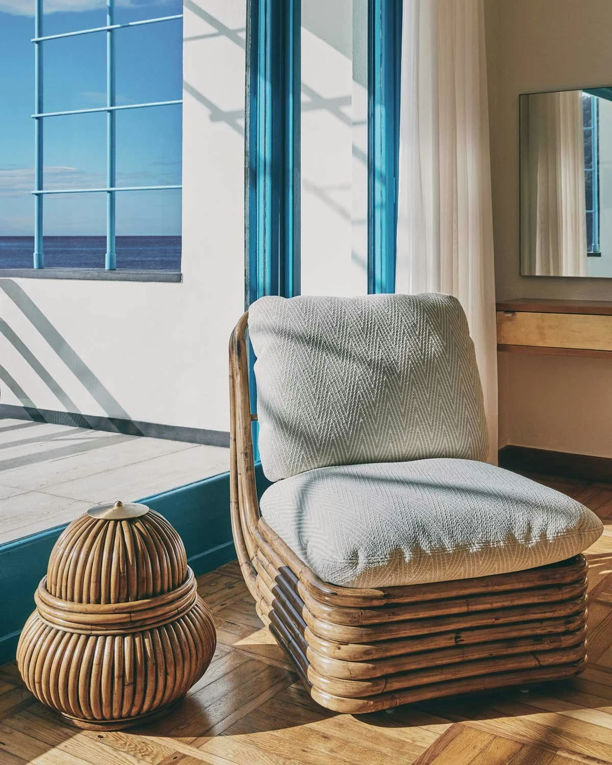 – Made of rattan and brass.
