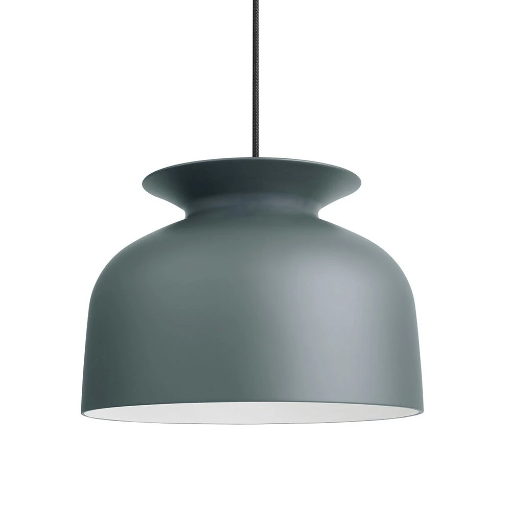 Ronde from Gubi is a pendant designed by Oliver Schick. Its bell-shaped design is made of spun aluminium that is powder coated in five different colours. Ronde is also available in two different sizes and is ideal for hanging in a cluster above the kitchen island or dining table, or why not hang a small model on either side of the bed.