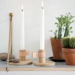 Hands On is a modern and simple kitchen roll holder from by Wirth. It is made of Scandinavian oak with beautiful visible growth rings and a functional leather strap that holds the paper roll in place.