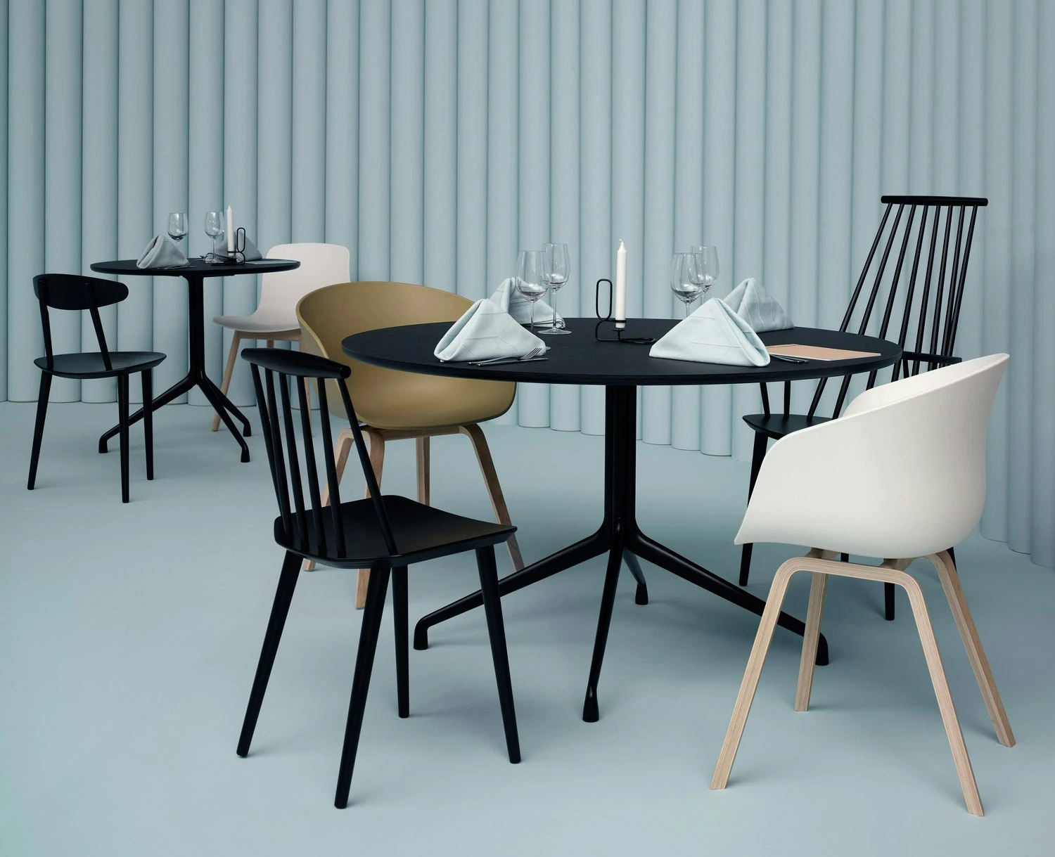 About A Chair 22 is a chair from Danish Hay that radiates the functional simplicity that is characteristic of the entire series. The chair consists of a curved back with armrests in polypropylene which provides excellent comfort and a soft uniform silhouette as well as a four-legged wooden base with classic expression that guarantees stability and long service life. Available in different colours.