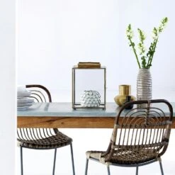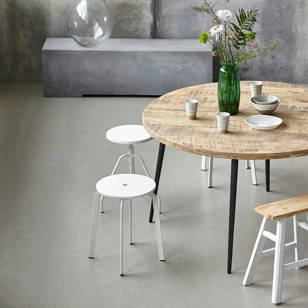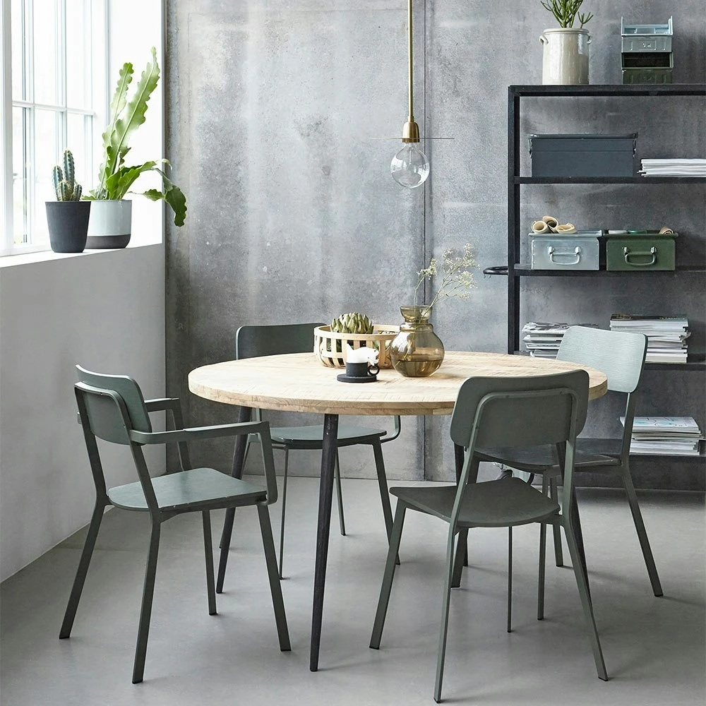 Club dining table from House Doctor. A round table with a rustic and robust design, with a table top of mango wood and iron legs. Create a ground-level feel in your kitchen with this dining table. Choose between black stained or natural tabletop.