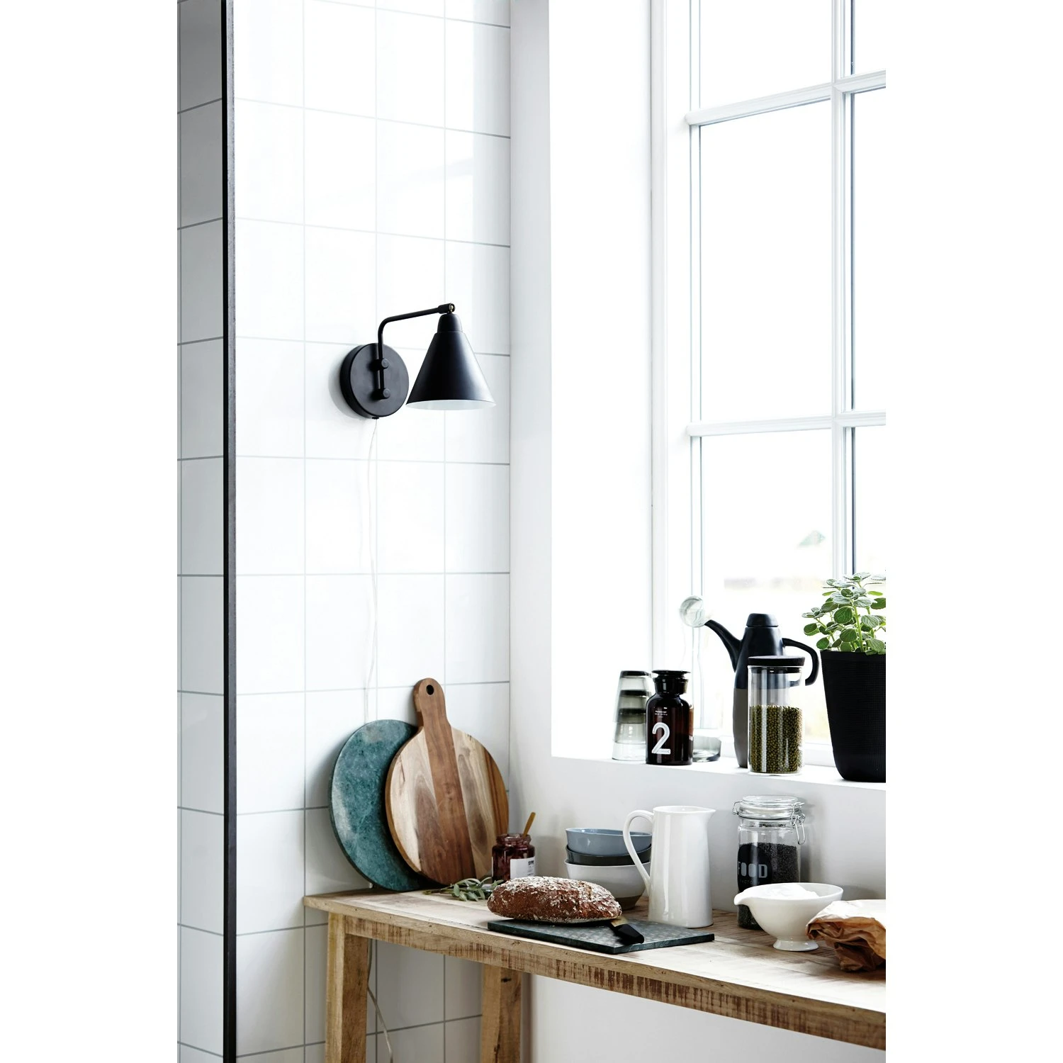 Game is a wall lamp from House Doctor with a classic, but still raw industrial look. The wall lamp fits perfectly in the bedroom. It is made of matt, black metal. The arm of the lamp is fully rotatable in both directions. The lampshade is white lacquered inside to make the light spread to the maximum. The power switch is on the cord. Dimensions from wall to lampshade are 31 cm, with extended lampshade the length is 41 cm. Cord length 2.5m.