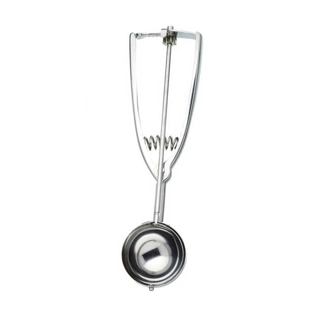 Deluxe Ice Cream Scoop from Kitchen Craft. A traditional trigger action stainless steel scoop, ideal for hard and soft ice cream, sorbets, and creamed mash potatoes. The scoop includes a rotating lever for easy release and comfortable, spring loaded handles. Available in three sizes. Dishwasher safe.