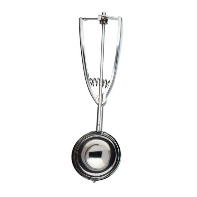 Deluxe Ice Cream Scoop from Kitchen Craft. A traditional trigger action stainless steel scoop, ideal for hard and soft ice cream, sorbets, and creamed mash potatoes. The scoop includes a rotating lever for easy release and comfortable, spring loaded handles. Available in three sizes. Dishwasher safe.