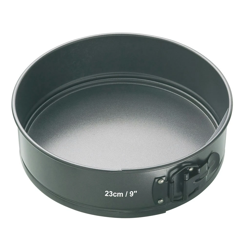 MasterClass Non-Stick Spring Form Cake Pan from Kitchen Craft. Ideal for making a variety of fruit, sponge and cheesecakes, including wedding and celebration cakes. Manufactured from heavy duty commercial weight 1 millimetre steel, the double non-stick coating and the loose base ensure easy release every time. Various sizes of spring form quick release cake pans available.