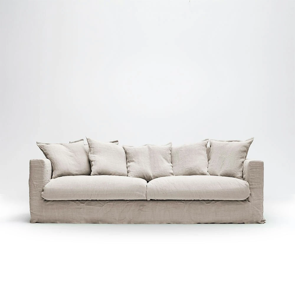 Cover for the Le Grand Air sofa. The fabric, is made of 100% thick, beautiful, soft prewashed linen, with texture and draping. This linen is heavy and durable with a natural charm and character. The exclusive fabric has a 30,000 Martindale value. Can be washed in machine at 30 degrees or hand washed.