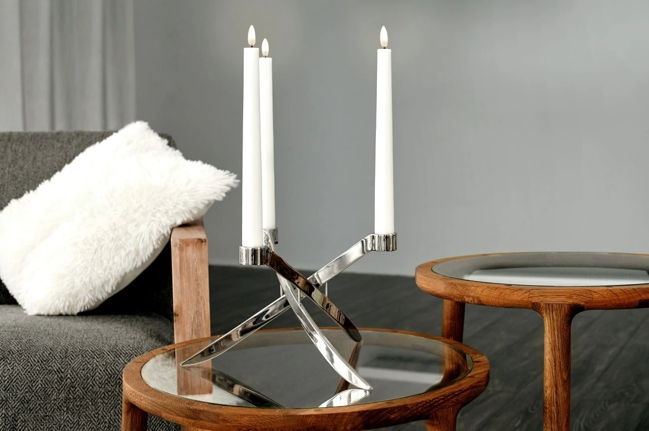 The taper candle by Uyuni has a classic design in virgin paraffin wax and ABS-plastic with a warm white light and a built-in timer. Battery not included.