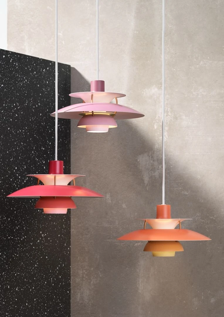 PH 5 Mini pendant from Louis Poulsen, design by Poul Henningsen. PH 5 Mini is a smaller version of the world-renowned classic PH 5 pendant. Poul Henningsen was a pioneer in the field of lighting design and dedicated a large amount of time to develop a design with an optimal wholesome light reflection that is gentle to the eyes, a true Danish classic.