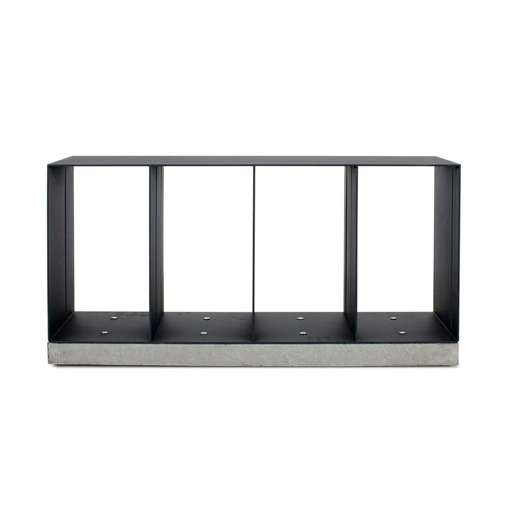 Manhattan Bench, designed by Cornelia Lindlöf for Röshults, is a sturdy bench with versatile storage facilities. Use as a shoe shelf, magazine storage or TV bench. Made of iron and concrete.