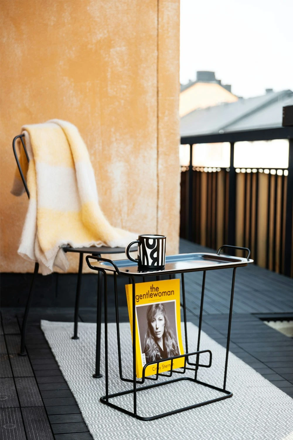 Minnie Mae paper is a side table designed by Louise Hederström for Maze. A versatile table where you both can store your magazines and use as a side table or bedside table. The table consists of a frame made of wire metal with a loose tray from Swedish Åry Form as a table top. The tray is made of pressed birch and gets its colour by hot pressing a coloured sheet. The folds that are sometimes seen in the corners are the result of manual work and therefore each tray is unique.