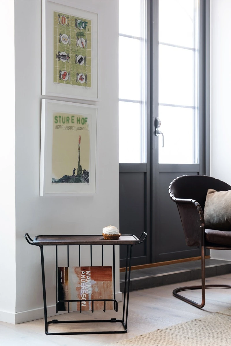 Store your favorite magazines and place the coffee cup on this modern side table.