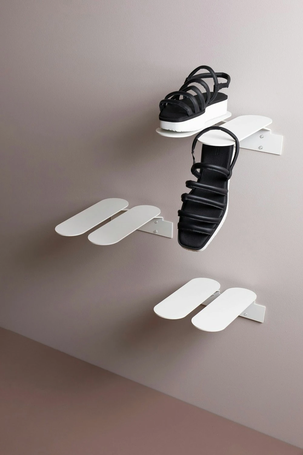 Step Shoe Shelf is designed by Gustav Rosén in 2014. Step S is a smaller variant of Step Shoe Shelf, a stylish shelf that smoothly holds your favourite shoes. The module can be combined with the various shoe shelves in the series, allowing you to create your very own system of shoe shelves. Available in black and white.