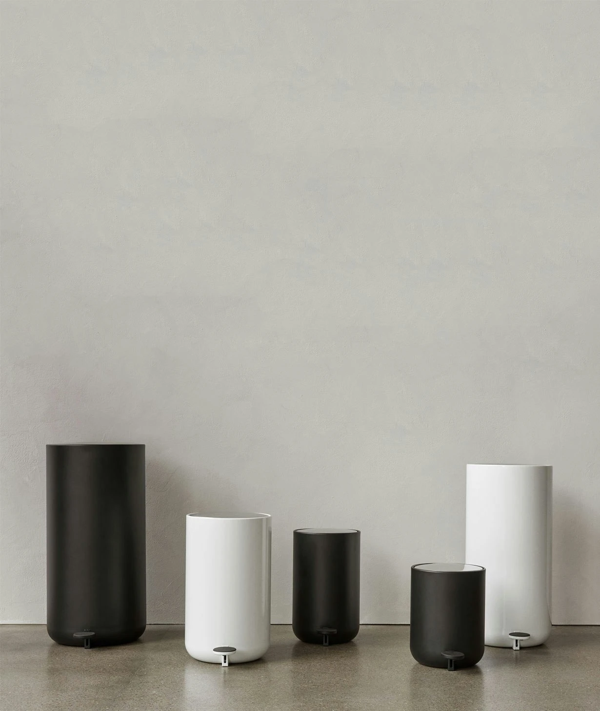 Elegant pedal bucket designed by Norm Architects for Menu. With its Scandinavian minimalism, it does well in most homes and interior styles. Despite its rounded shape, it stands firmly on the floor and the lid opens easily when you press the pedal. The pedal bucket is made of steel and plastic which makes it easy to clean. Feel free to combine with other bathroom products from Menu for a whole in your bathroom.