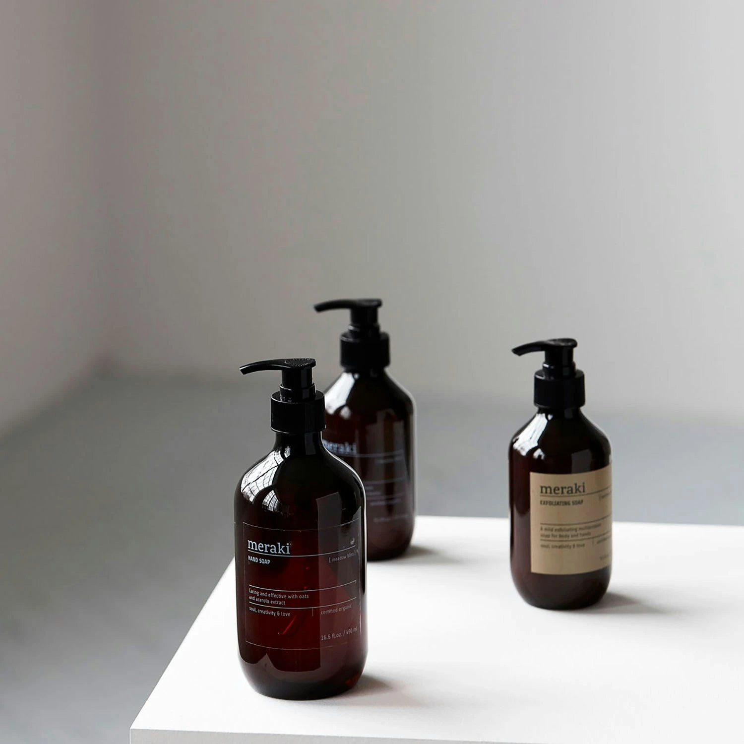 Meadow Bliss has a wonderful kombination of lemon, mint and tea. The hand soap comes in a simple and stylish bottle that fits both the kitchen and the bathroom.