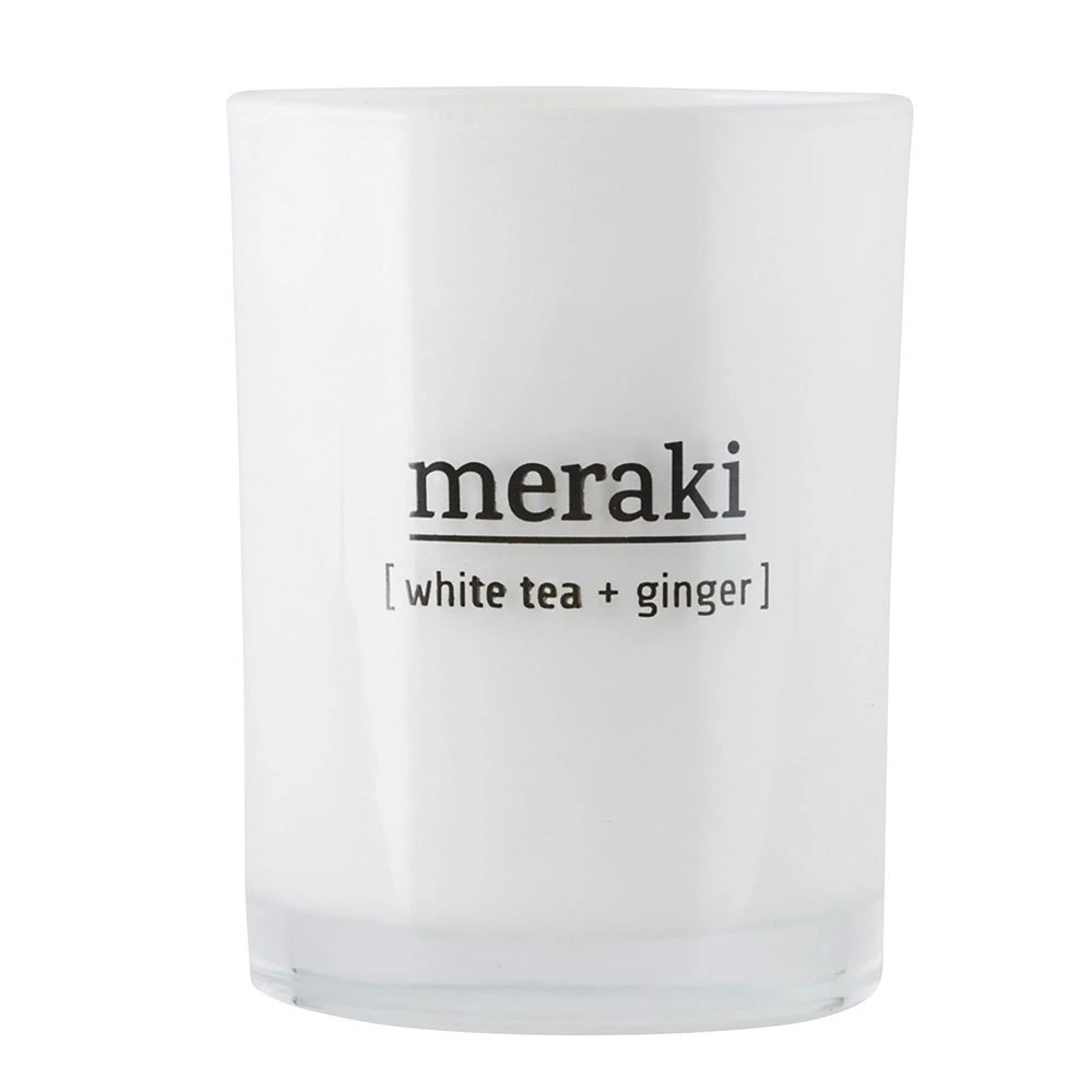 Let the Scented candle from Meraki fill your room with scent of white tea and ginger. Burn time about 35 hours.