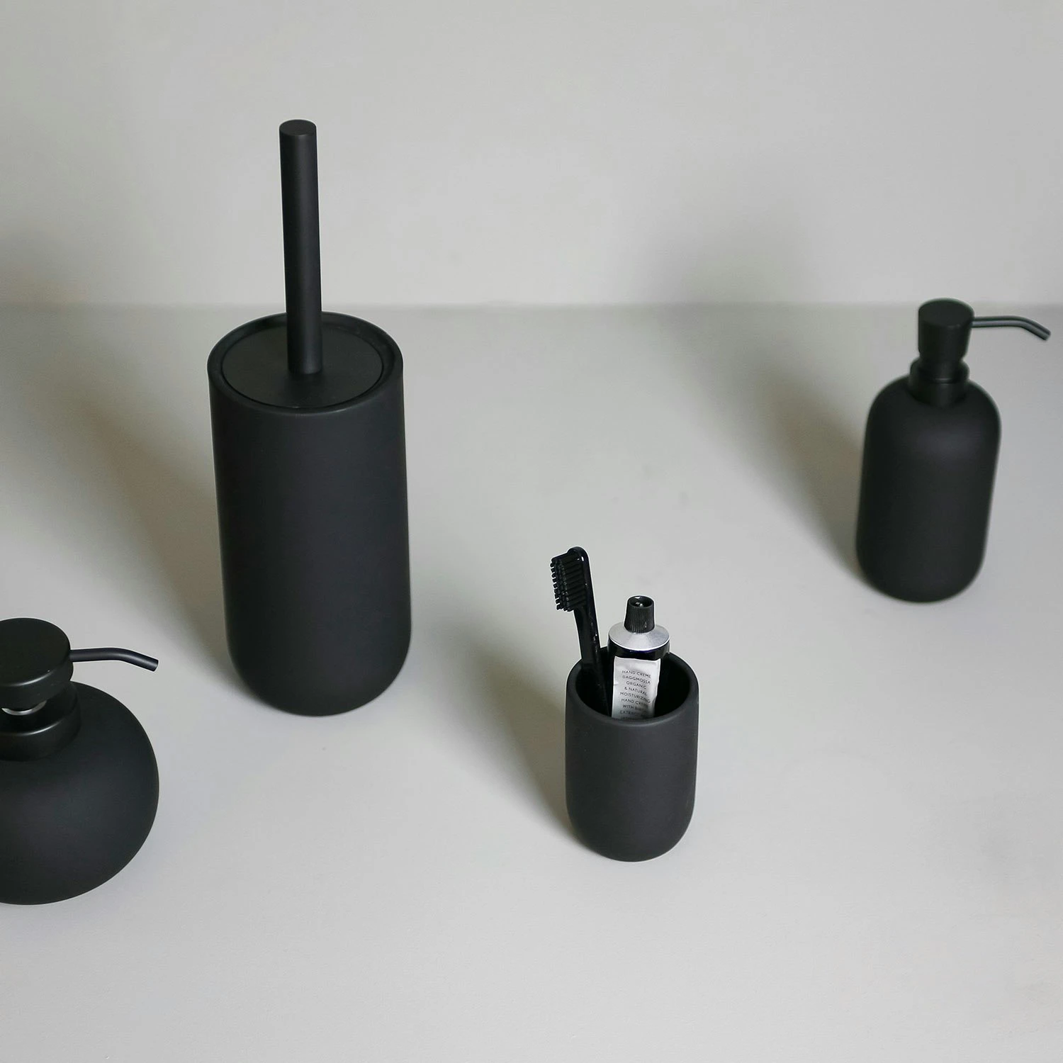The toothbrush holder by Mette Ditmer has a minimalistic design with an organic shape. It is made of ceramic with a rubber finish. A perfect detail that brings joy to your everyday life.