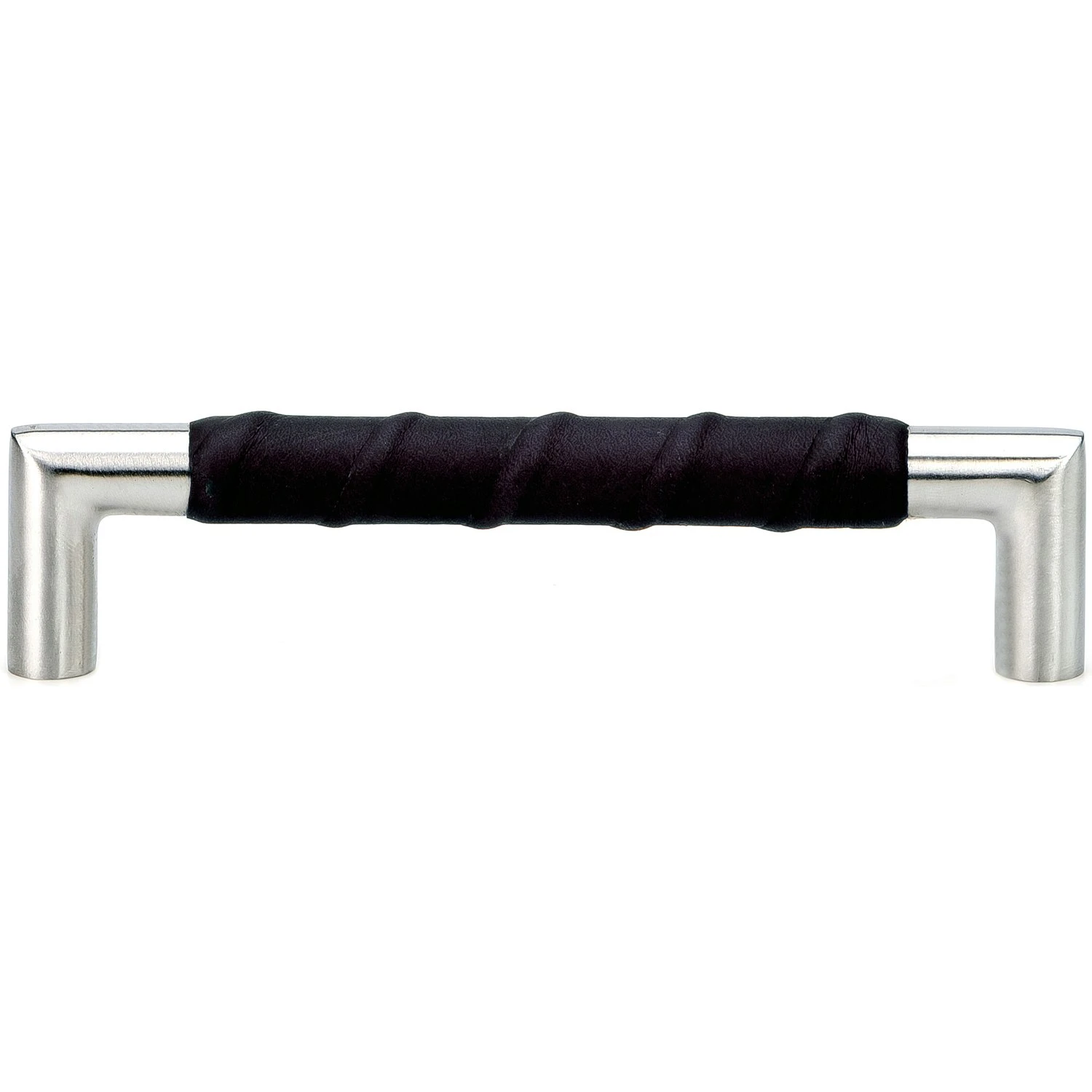 Stainless steel handle wrapped with leather.
