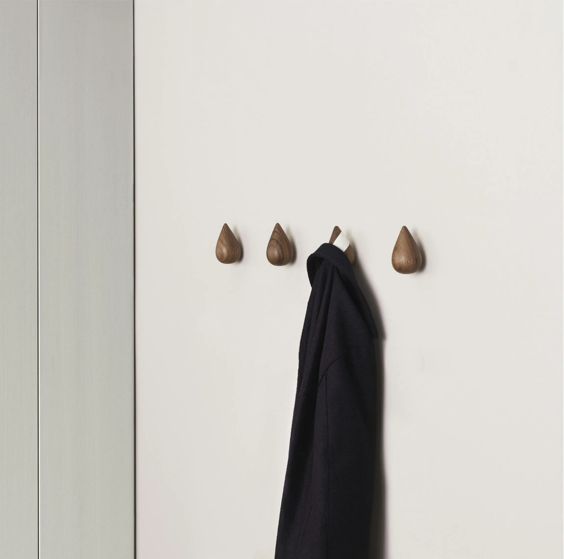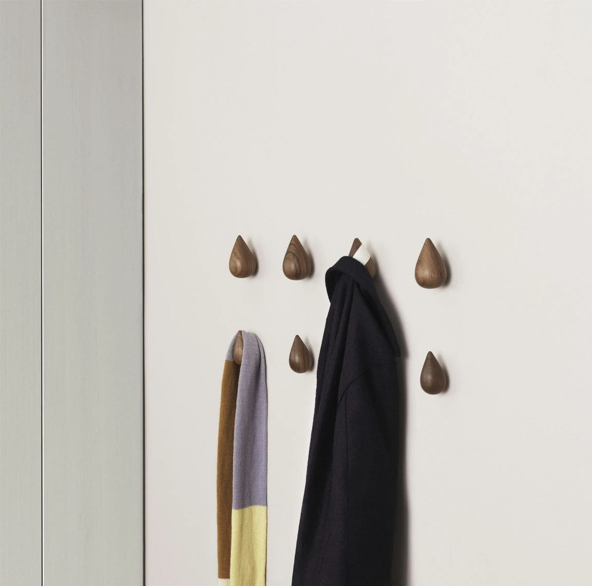 Dropit Large, hook from Normann Copenhagen. This beautiful drop-shaped hook is made of beech and makes a beautiful interior detail in your home. Hang up your favourite items and accessories to highlight them in a stylish way. Screw and plug for suspension are included. Sold in 2-pack.