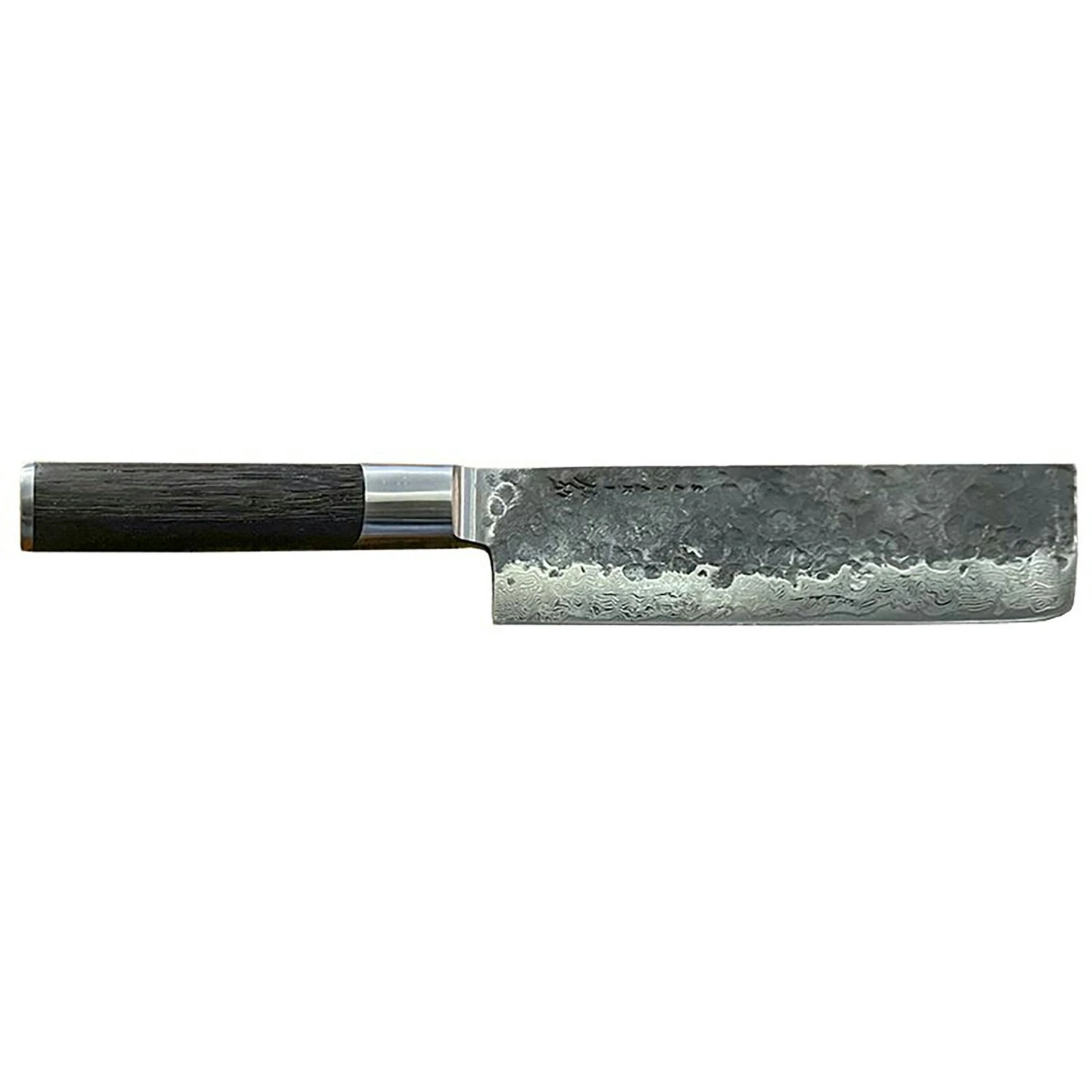 The vegetable knife by Satake has timeless, hammered design with ergonomic handle in wood perfect for slicing vegetables. It has sharp blade in steel.