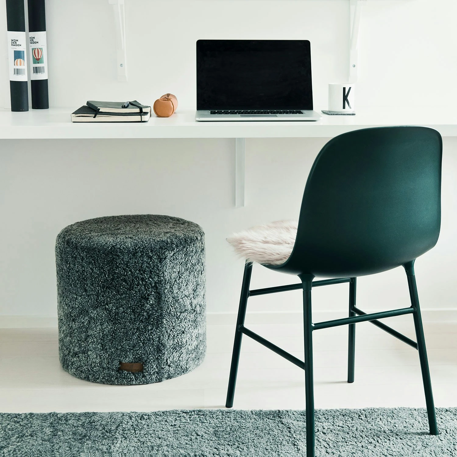 Sheperd Moa. A round seat cushion made from long-haired sheepskin of Australian origin. Dyed in different lovely shades. Natural undyed leather back.