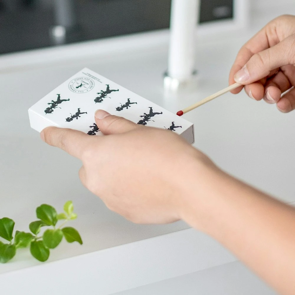 Designed matchbox with a stylish emblem on the front and pattern on the back, with the image of the classic Solstickeboy created by Einar Nerman in 1936. Choose from four different colours.