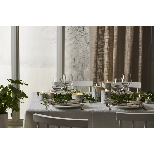 – The pillar candle fits well in the dining room.
