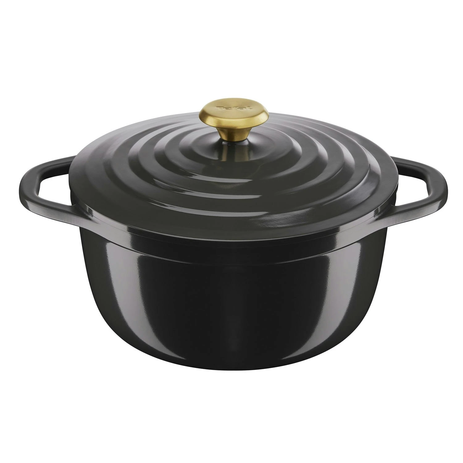 The pot by Tefal is made of casted aluminium with a light weight with ceramic coating for easy cleaning. It has a decorative lid with a gold coloured knob with an uneven surface on the inside for optimal functionality. This item is suitable for all types of cooktops, including induction cooktops. Choose between different sizes.