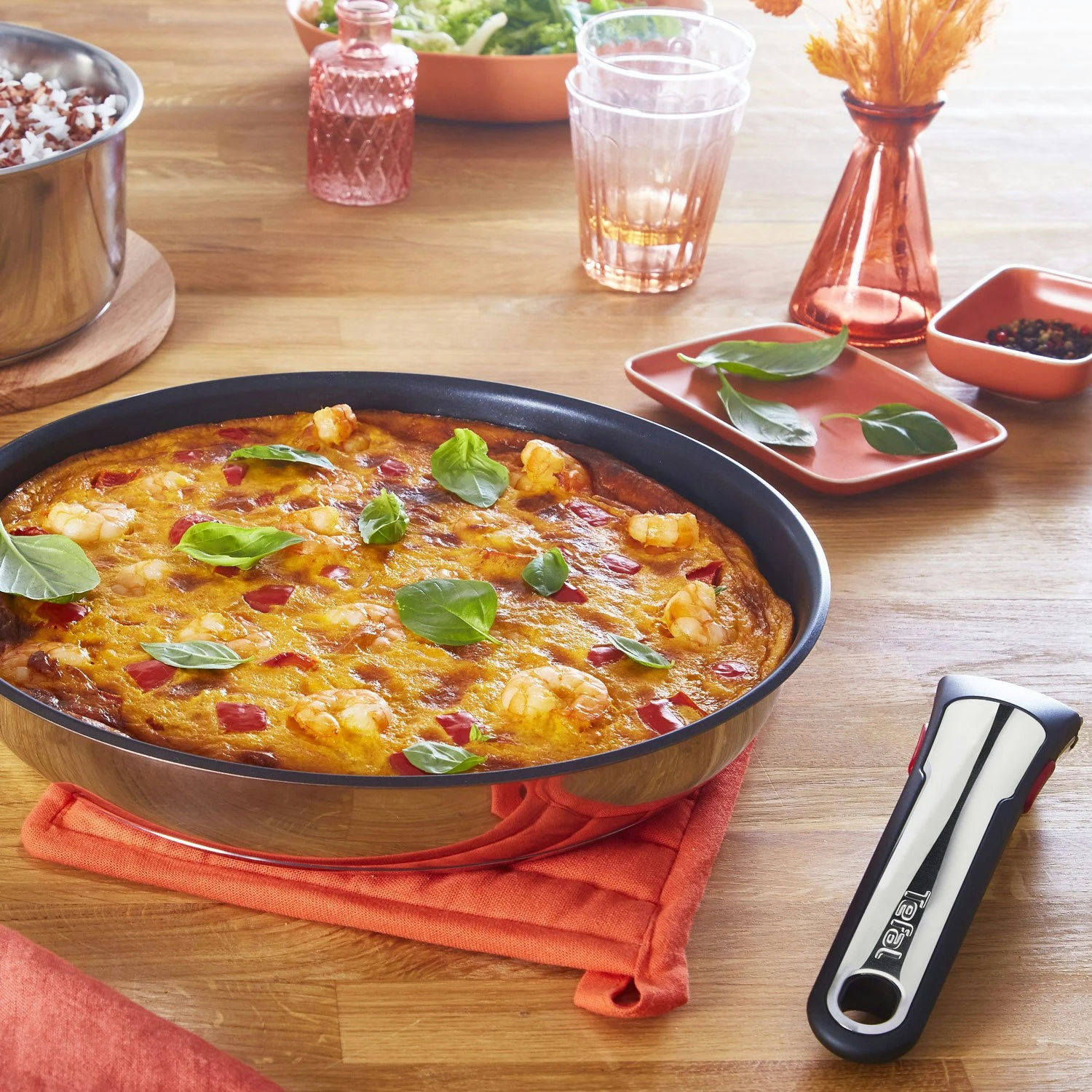 The handle by Tefal has a removable, safe design to easily move around at home. It is made of stainless steel with black, nice details.