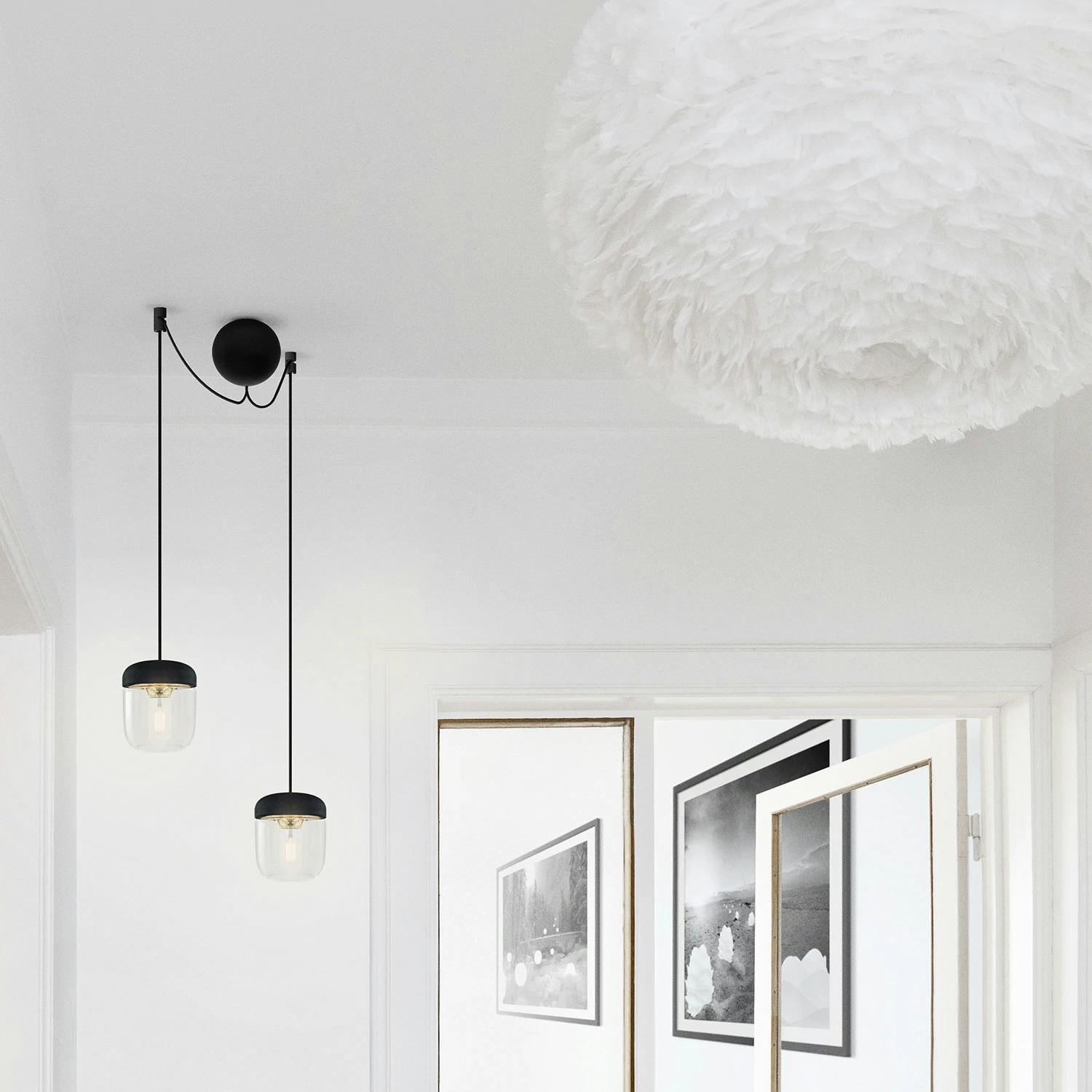 Timeless spherical design inspired by a canopy to discreetly and elegantly hang ceiling lamps in beautiful organic clusters, either in a row or at different levels.
