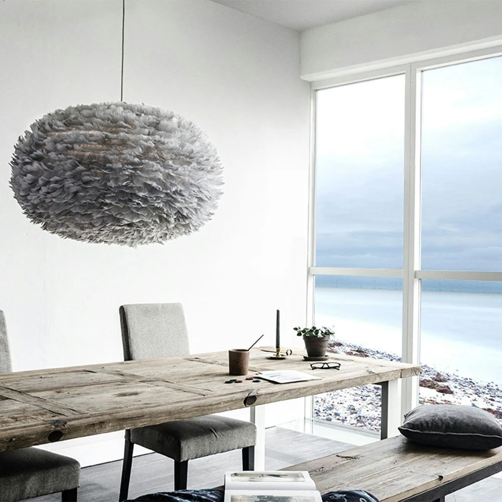 Eos lampshade is made of genuine goose springs and creates a soft and comfortable light in the room. Perfect to hang over a table, in the hall or anywhere in the home where you want to increase the cosiness factor instead of having a strong dazzling light. There is an Eos for each room and layout so you do not compromise your interior style. Eos lamp screen needs to be supplemented with a light source, lamp cable and lamp foot, this is sold separately.